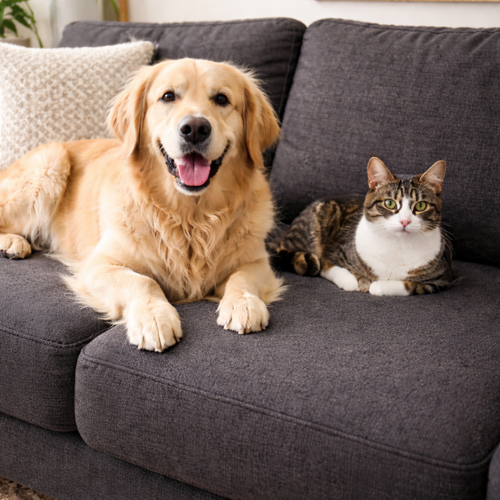 canapés, fauteuils, tapis, moquettes, coussins, vêtements, paniers pour animaux, sièges et coffres de voiture.